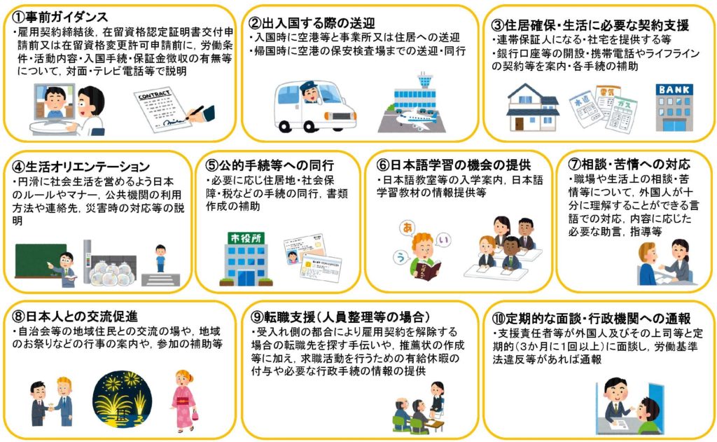 特定技能1号者に対して必要な支援は以下のとおりです。